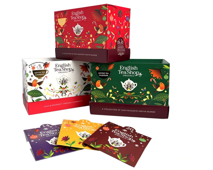 Originální vůně a chutě kvalitních čajů sbíraných na Srí Lance, objevíte v Adventním kalendáři od značky English Tea Shop. Vychutnejte černé, zelené a bílé čaje v lahodných kombinacích s ovocem, kořením a bylinkami pro tu správnou vánoční atmosféru. Kalendář obsahuje také bylinné čaje a rooibosy, které tělo krásně prohřejí a uvolní.