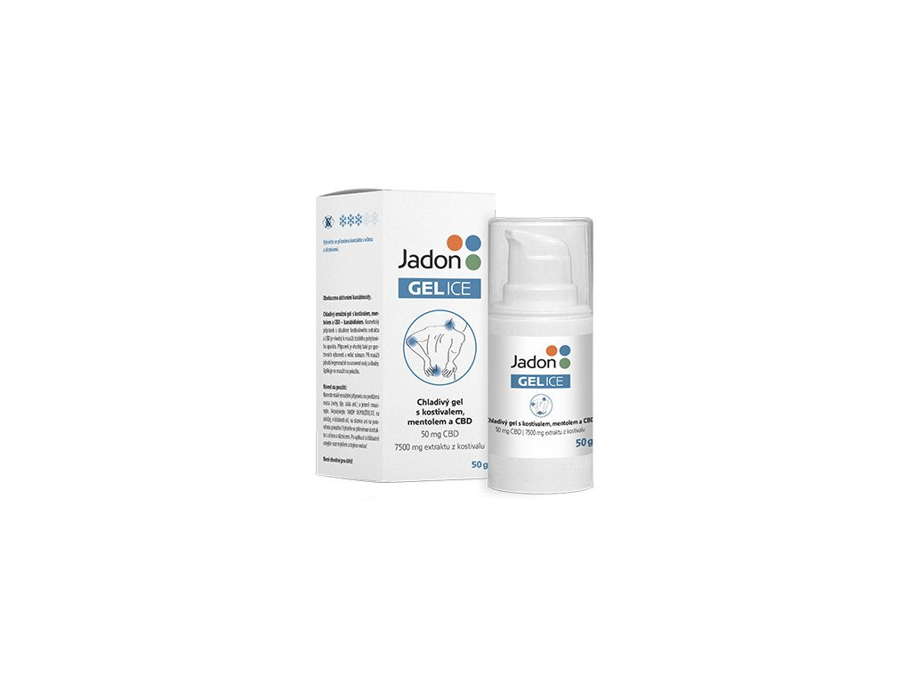 Chladivý emulzní gel Jadon Gel ICE s kostivalem, mentolem a CBD – kanabidiolem extrahovaným z bio konopné herby BIOHEMP. Gel obsahuje 50 mg CBD a 7500 mg extraktu z kostivalu. U produktu Jadon ICE GEL (chladivého gelu) se v plném rozsahu projevuje synergický účinek látek obsažených v gelu: rychle působícího mentolu, který vede podrážděním chladových receptorů k nižšímu prožívání akutní bolesti a zklidnění pacienta a připravuje půdu pro aktivaci endokanabinoidního systému skrze CBD obsaženém v gelu. Projevuje se zde pozitivně ale také protizánětlivý účinek kostivalu (extraktu z kořene).